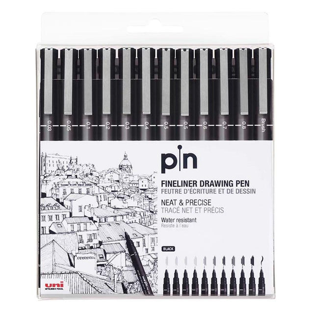 Uni Pin Fineline Permanent Drawing Set 12 Piece