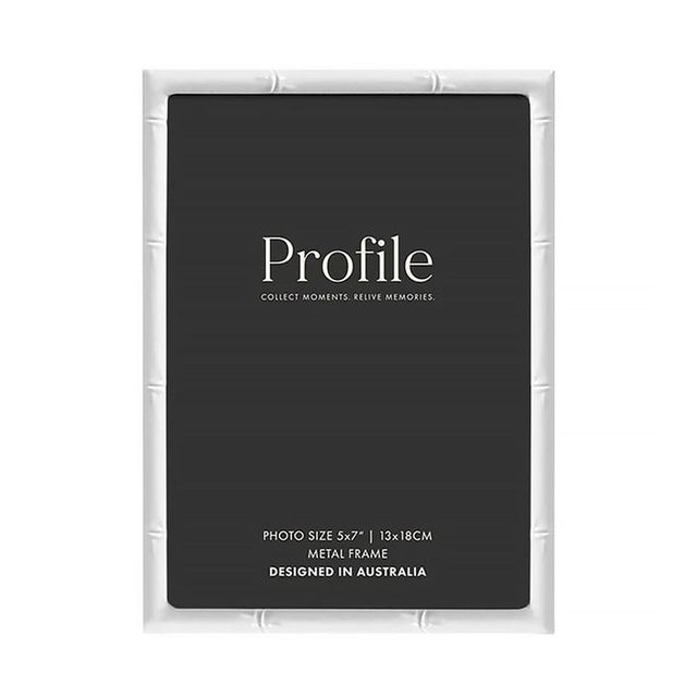 This vintage-inspired Bamboo White Metal Photo Frame features a gloss white mirror finish in an elegant narrow edge design with a bamboo pattern.