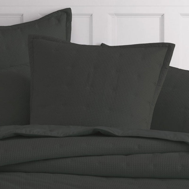 he Ascot European Pillowsham Granite by Logan And Mason Platinum is positively beautiful in its simplicity. Constructed from a textured waffle weave with neatly tailored edges, this quilted design is both sophisticated and contemporary.