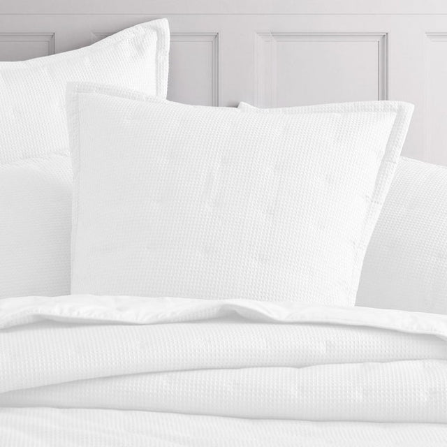 The Ascot European Pillowsham White by Logan And Mason Platinum is positively beautiful in its simplicity. Constructed from a textured waffle weave with neatly bound edges, this quilted design is both sophisticated and contemporary.