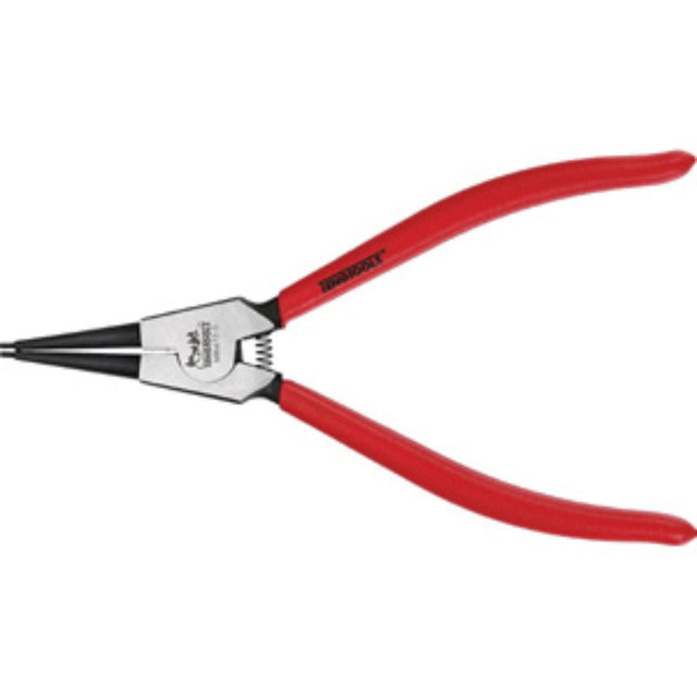 MB472-9 - 9in Circlip Pliers Snap ring (circlip) pliers. Chrome vanadium. Polished head. Vinyl grip handles. Return spring. DIN 5254. Type: Straight / Outer Length: 225mm / 9in Tip: 2.25mm Capacity: 40-100mm Weight: 160gm