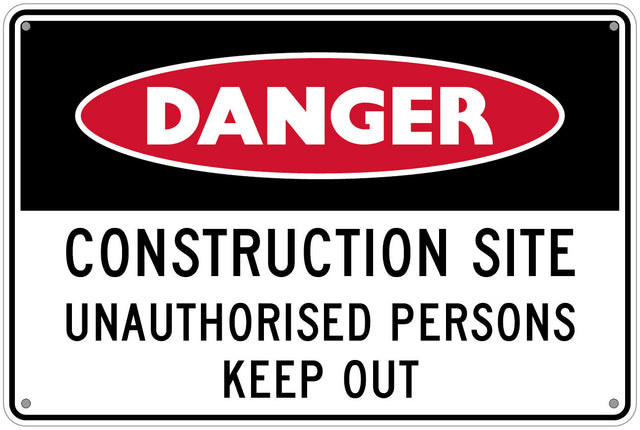 Dangerous Construction Site Sign, Unauthorised persons keep out