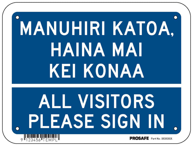 Visitors Please Sign In Maori-English, 300mm x 225mm, POLY