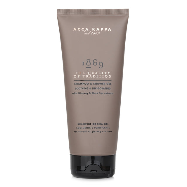 The Acca Kappa - 1869 Shampoo & Shower Gel is a premium 2-in-1 cleansing solution, meticulously crafted for the modern man. This invigorating 200ml (6.7oz) gel is specially formulated to nurture and cleanse both body and hair. Enriched with natural extracts of refreshing Ginseng and antioxidant-rich Green Tea, this shampoo and shower gel combo provides intense hydration and nourishment. The infusion of Pro-vitamin B5 and Glycerin helps protect and revitalize your skin and hair, leaving them smooth, healthy, and irresistibly touchable. Ideal for daily use, this gentle yet effective formula ensures a refreshing cleanse while enhancing your overall grooming routine. Experience the luxury of spa-like care in the comfort of your shower. At Smartfox NZ, we prioritize authenticity and quality—rest assured that you will receive genuine products straight from our Auckland warehouse. Elevate your daily routine with the Acca Kappa - 1869 Shampoo & Shower Gel; your skin and hair will thank you!