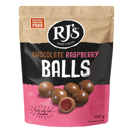RJ’s Raspberry Chocballs 220g - Carton of 12