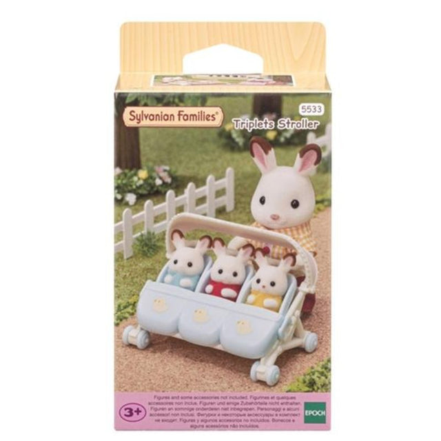 Introducing the Sylvanian Families Triplets Stroller, an enchanting pushchair designed for your adorable baby triplet figures! Released in April 2021, this delightful stroller is perfect for imaginative play and nurturing adventures. Featuring space for one baby and a pair of twins, this versatile stroller easily transforms by removing the seat, allowing endless creative scenarios. Not only does it serve as a stroller, but it can also function as a child seat in compatible vehicles. It fits beautifully with the Crib for Triplets and the Triplets Care Set, encouraging even more exciting storylines in your child's playtime (sold separately). This uniquely designed stroller, complete with a cozy canopy, seat, and a stylish seat cover, makes a great addition to any Sylvanian Families collection. Ideal for children aged 3 years and up, the Triplets Stroller promises joy and creativity! Enhance your little one's play experience by pairing it with other vehicles like the Picnic Wagon, Family Saloon Car, and Family Campervan (all sold separately). Let your imagination roam free with the Sylvanian Families Triplets Stroller and create magical moments of playtime fun!