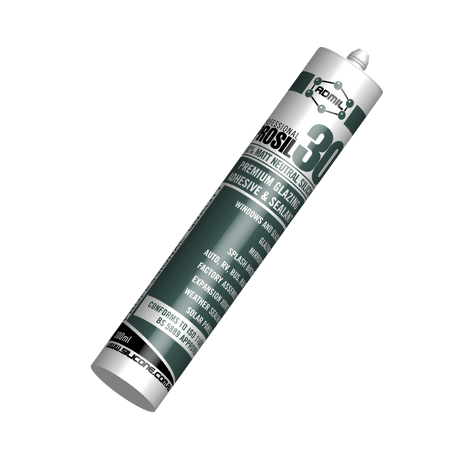 PROSIL 30 is a premium extra high strength medium modulus one part moisture curing, 100% calcium carbonate filled, high performance neutral cure silicone sealant (oxime) designed to give superior adhesion and durability in a wide range of glazing, weather sealing, and trade applications. It has been specifically formulated for professional glazing. It will bond to form a strong weatherproof seal on most common building materials such as: glass, ceramic, steel, aluminium, brick, concrete, most plastics etc.