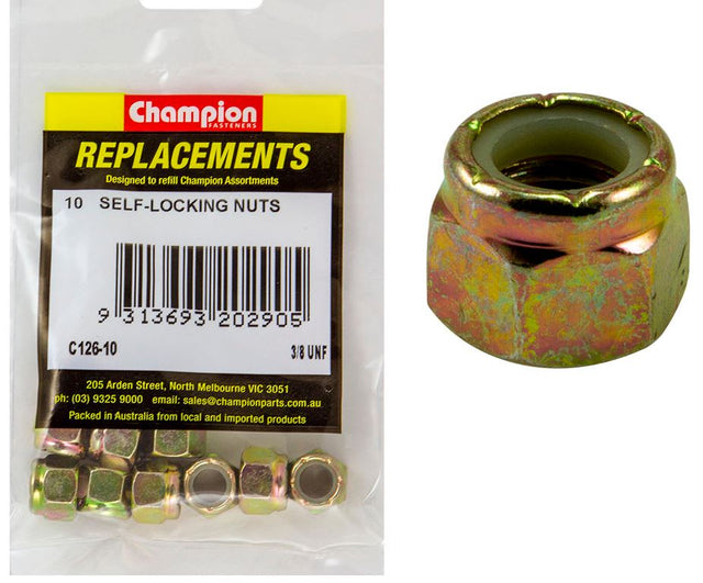 Champion 3/8in UNF Nylon Insert Self-Locking Nut 3/8" 10 (Pack)