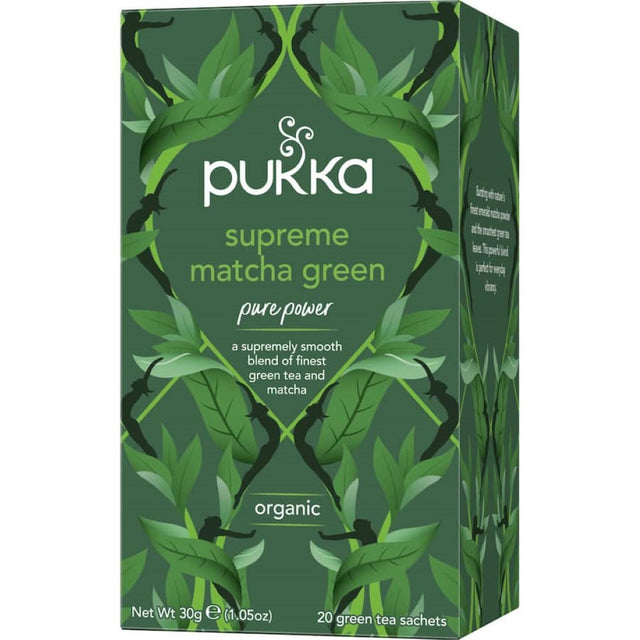 Elevate your wellness routine with Pukka Green Tea Supreme Matcha, a premium blend crafted for those seeking vitality and balance. This exquisite green tea combines the rich, vibrant flavor of matcha powder with carefully selected green tea leaves, creating a powerful infusion that supports both your mind and body. Each cup of Pukka Green Tea Supreme Matcha is meticulously formulated using the latest scientific research and traditional herbal wisdom, ensuring that you receive the maximum benefits from every sip. Our ethically sourced and organically grown ingredients deliver essential oils and nutrients that invigorate your senses and promote overall wellness. Perfect for daily consumption, this soothing green tea blend encourages clarity and focus, making it an ideal choice for busy lifestyles. With every compostable tea bag, you're not just enjoying a refreshing drink; you're nurturing your health and well-being. Boost your energy and nourish your spirit with Pukka Green Tea Supreme Matcha—a delightful way to keep your spark alive. Treat yourself to the experience of upliftment and hydration with this premium green tea blend, designed to surpass your expectations and harmonize with your daily routine. Experience the essence of natural vitality today with Pukka Green Tea Supreme Matcha at Smartfox NZ, your go-to store for sustainable and health-focused products.