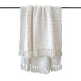 Introducing the Asha Throw in White, a perfect blend of luxury and comfort for your home. This throw blanket, made from ultra-soft chenille yarn, offers an inviting texture ideal for chilly evenings. Its sophisticated check pattern adds elegance to any room, whether draped over your sofa or enhancing bedroom decor. The chic tassel detailing along the edges elevates it from just a functional item to a striking accessory for modern living spaces. Upgrade your home decor with this versatile throw that combines style and practicality. Measuring 130 x 200 cm, plus a 10 cm fringe on two sides, it’s perfect for draping across furniture or snuggling up with a good book. Plus, it's machine washable, ensuring easy care without compromising quality. Soft and comfy fabric, timeless check pattern, ideal for bedding or living rooms, fringe detail for added style, durable and easy to care for. Contents: 1x Asha Throw. Dimensions: 130 x 200cm + 10cm x 2. Fabrication: Polyester.