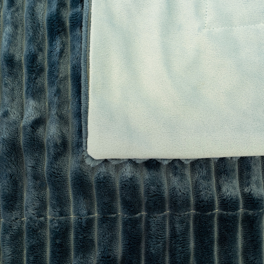 Experience ultimate comfort with our Channel Throw Petrol, designed for cozy evenings. This irresistibly soft and plush throw is perfect for snuggling on the couch or bed. Featuring a luxurious velour stripe pattern on one side and smooth fleece on the reverse, it offers texture and warmth for relaxation. The beautiful petrol color adds elegance to your space, serving as a stylish accent that enhances any décor.