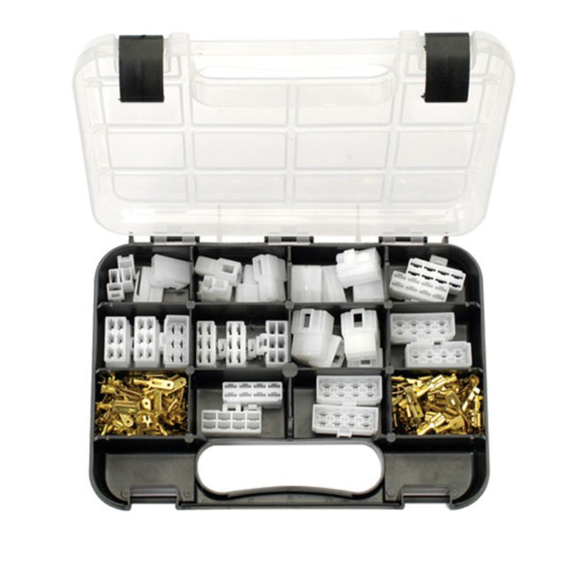 Introducing the **Champion GJ Grab Kit 178pc Terminal Connect Blocks**—the ultimate solution for all your electrical connection needs! This extensive 178-piece kit features a wide variety of terminal connect blocks available in 4 sizes, ranging from 2-pin to 8-pin configurations, ensuring compatibility with various electronic and electrical projects. Designed for both professionals and DIY enthusiasts, these high-quality male and female blocks are perfect for creating secure and reliable connections in automotive, home appliance, and industrial applications.