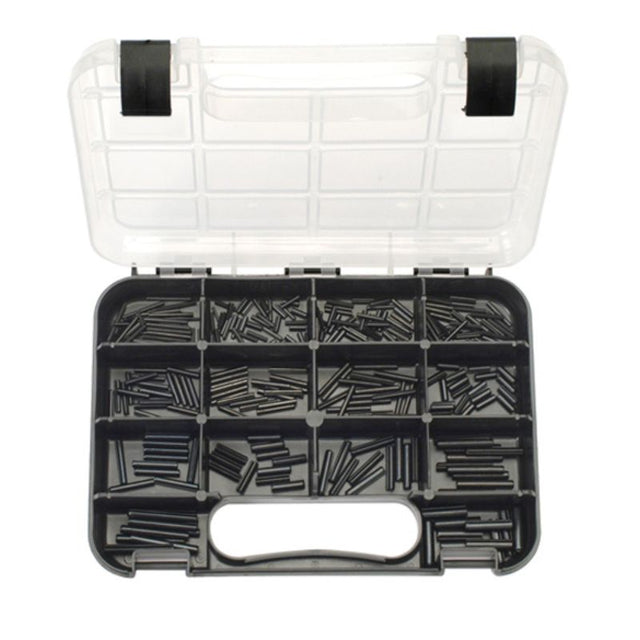 Upgrade your toolkit with the Champion GJ Grab Kit 285pc Imperial Roll Pins, featuring an extensive selection for your precision fastening needs. This comprehensive kit includes 14 sizes of roll pins, ranging from 1/16" to 1/4" in diameter and lengths varying from 1/2" to 1-1/2". Perfect for engineers, builders, and DIY enthusiasts, these roll pins are ideal for securing gears, shafts, and various components in machinery and automotive applications.