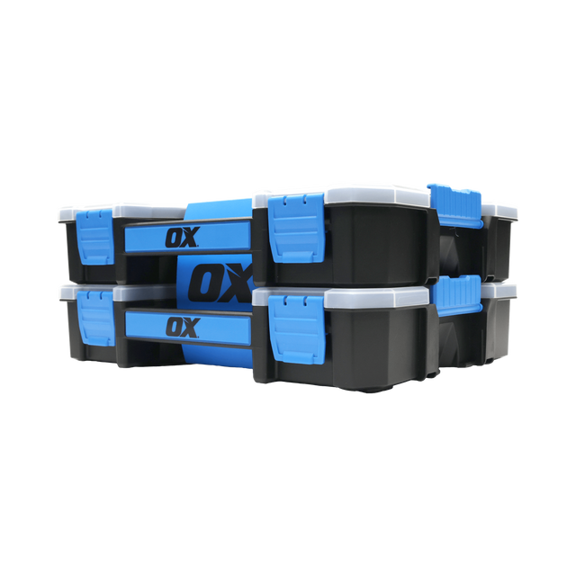 The OX Trade Series Organisers feature internal separators that efficiently organize tools and ensure easy access. Transparent, impact-resistant polycarbonate lids provide clear visibility of contents, while the strengthened PP mixture body protects against damage and guarantees long-lasting durability. A solid gasket ensures the organiser is dustproof and water-resistant, making it the perfect solution for professionals seeking reliable tool storage.