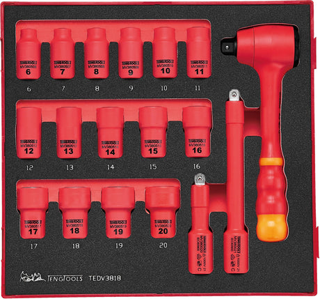 Teng 1000V VDE Dr. Insulated Socket Set- TED Tray 3/8" 18 Piece (Set)