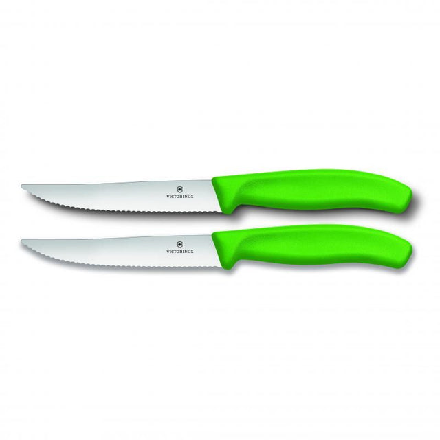 Victorinox Steak & Pizza Knife 12cm, Wide Blade, Wavy Edge, 2 Pc Set Green
