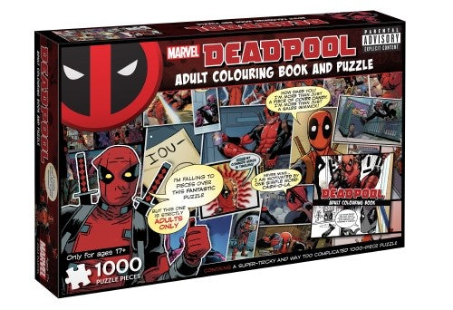 Gah! I'm in 1000 pieces! Hi, Deadpool here. This one ain’t for the kiddies because this puzzle is hard … like real hard. And if you adults need a break from this 1000-piece puzzle, there’s, like, this cool colouring book with some pretty awesome (pssst … but graphic) angles of yours truly.