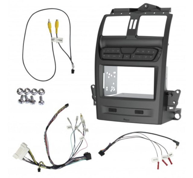 Complete a full aftermarket headunit installation in your Ford Falcon BA-BF or Territory SX-SY, single and dual zone variants, from start to finish with this Aerpro vehicle specific headunit installation kit. Containing everything required for the perfect upgrade in one box, this kit includes: a gunmetal grey facia kit with built in H-VAC controller and steering wheel control interface, mounting kit, vehicle specific wiring loom, video in/out loom and universal SWC patch lead.