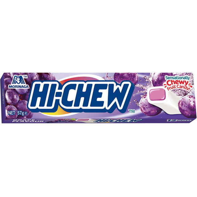 Experience the delicious flavor of Hi-Chew Grape in a 57g pack, perfect for candy lovers! Each carton contains 12 packs of chewy candy, delivering a burst of grape taste with every bite. Hi-Chew Grape is more than just candy; it offers a delightful chewy texture and fruity sweetness, making it great for road trips, parties, or snacks. This popular Japanese candy brand combines rich flavor with enjoyable chew, appealing to kids and adults alike. Whether sharing with friends or enjoying alone, these grape-flavored chews will transport you to fruity bliss. Stock up on this chewy delight today! Ideal for gifting or movie nights. Order now to discover why Hi-Chew is a favorite among candy lovers worldwide!