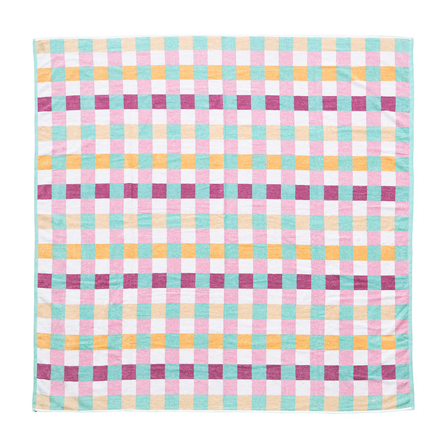 This super large beach towel blanket is perfect for wrapping yourself up in, sharing with a friend or sitting on it as you enjoy a bite to eat. The jacquard design has been woven from 100% cotton, and features a check pattern in many colours. Featuring soft velour on one side, this is an ideal addition to your collection, ready for all of your beach or poolside adventures.