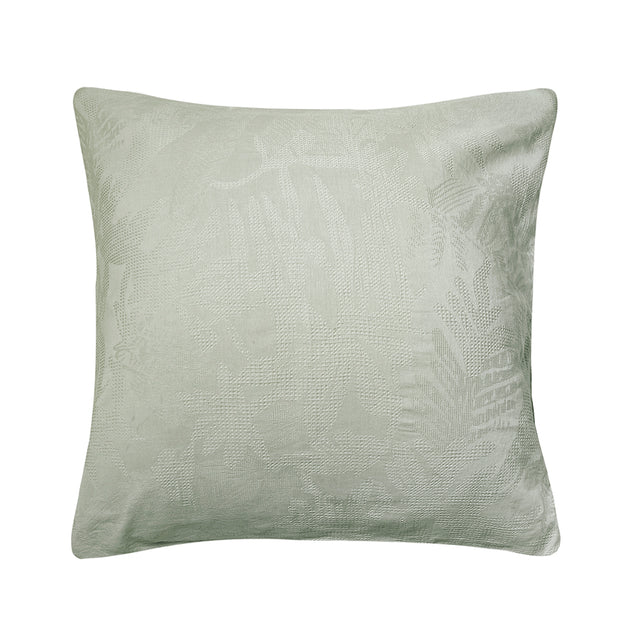 Embrace the soothing tones of nature by styling your bedroom with our Karridale quilt cover this Summer. The 100% cotton jacquard fabric features a textural leaf pattern on the front, and a plain-coloured cotton percale fabric on the reverse, both in a light sage green colour.