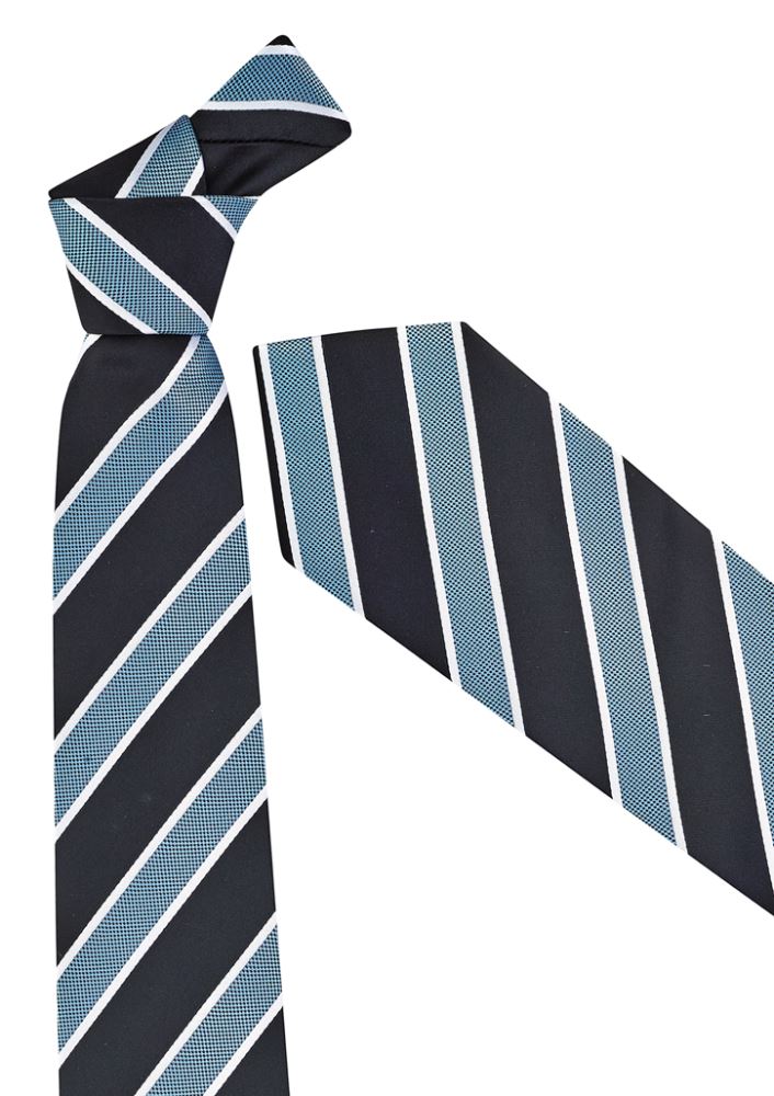 Mens Wide Contrast Stripe Tie - Alaskan Blue - One Size - Biz Collection