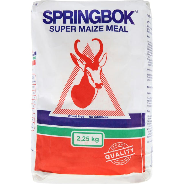 Indulge in the authentic taste of Springbok South African Maize Meal, a staple ingredient in traditional South African dishes. Made from premium maize, our maize meal is finely ground to perfection, perfect for preparing delicious pap, porridge, and other maize-based recipes. Packed with essential nutrients, our maize meal is versatile, easy to prepare, and guarantees a satisfying meal every time. Whether you're cooking for a family dinner or hosting a festive braai, Springbok South African Maize Meal is the ideal choice for a taste of South Africa in every bite.