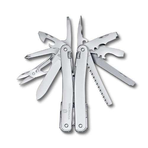There are tools, and then there’s the Swiss Tool MX. Compact, yet mind-blowingly capable, this is the pocket-sized toolbox that has every eventuality covered. No task is too big or small for this mighty multi-tool. Packing an astounding 26 functions into its diminutive form, it’s the perfect hybrid of practicality, portability and precision. Our MX model features one-handed opening, and all tools are lockable and accessible from the outside. Neat.