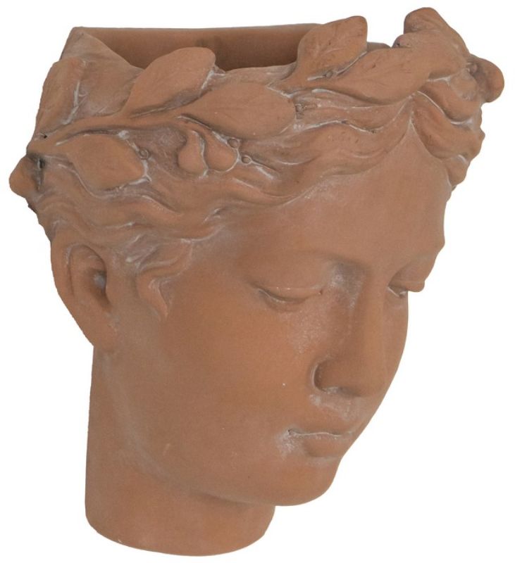 Perfect for succulents, ferns, or your favorite indoor plants, this planter not only enhances the beauty of your greenery but also serves as a captivating centerpiece in living rooms, patios, or office spaces. With its durable construction, the Terracotta Visage Head Planter is designed for both style and longevity, ensuring your space remains enchanting for years to come.