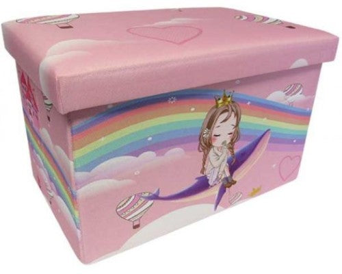 This big toy box is ideal for toys and has a cushioned top for use as a child's stool. Measures approx. 43 x 28 x 26 cm tall. Despatched flat packed for easy assembly.