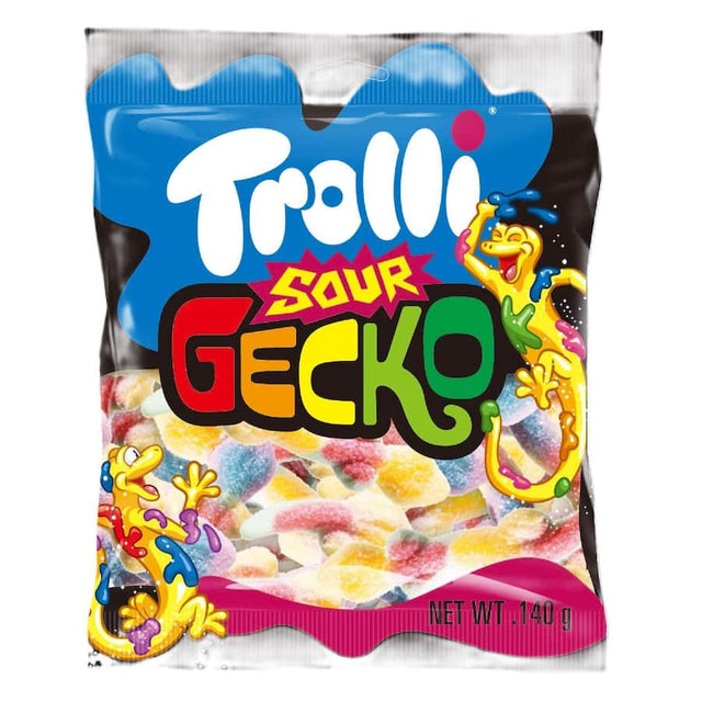 Trolli Gummi Sour Gecko's are brightly coloured flavoured jelly shaped Gecko Lizards.
